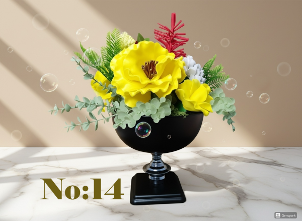Seluna No:14, dinamik renkleri ve prestijli tasarımı bir araya getiriyor. Siyah, geniş kadeh formundaki özel vazosu üzerinde yükselen canlı sarı çiçekler, ortama anında pozitif bir enerji yayıyor. Kırmızı egzotik detaylar ve yumuşak geçişli yeşilliklerle zenginleştirilen bu aranjman, modern sanatın çiçeklerle buluşmuş hali.