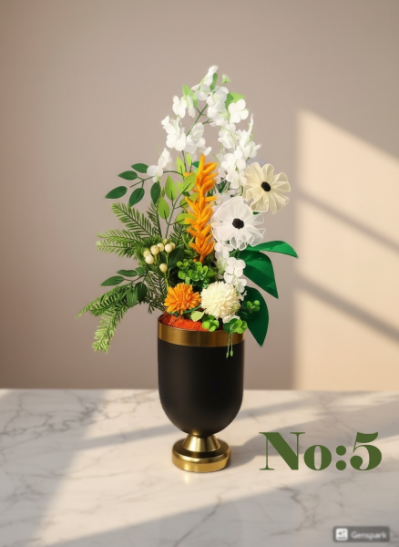 Seluna No:5 – Altın Detaylı Siyah Kadeh Vazoda Dikey Yapay Aranjman