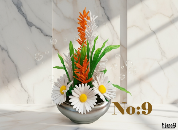 Doğanın en saf sembolü papatyalar, Seluna No:9 ile modern bir sanat eserine dönüşüyor. Gümüş rengi metalik kasesi içerisinde yükselen turuncu ve beyaz egzotik detaylar, papatyaların klasik güzelliğini fütüristik bir dokunuşla harmanlıyor. Bu aranjman, sadeliği dinamizm ile buluşturmak isteyenler için özel olarak tasarlandı.